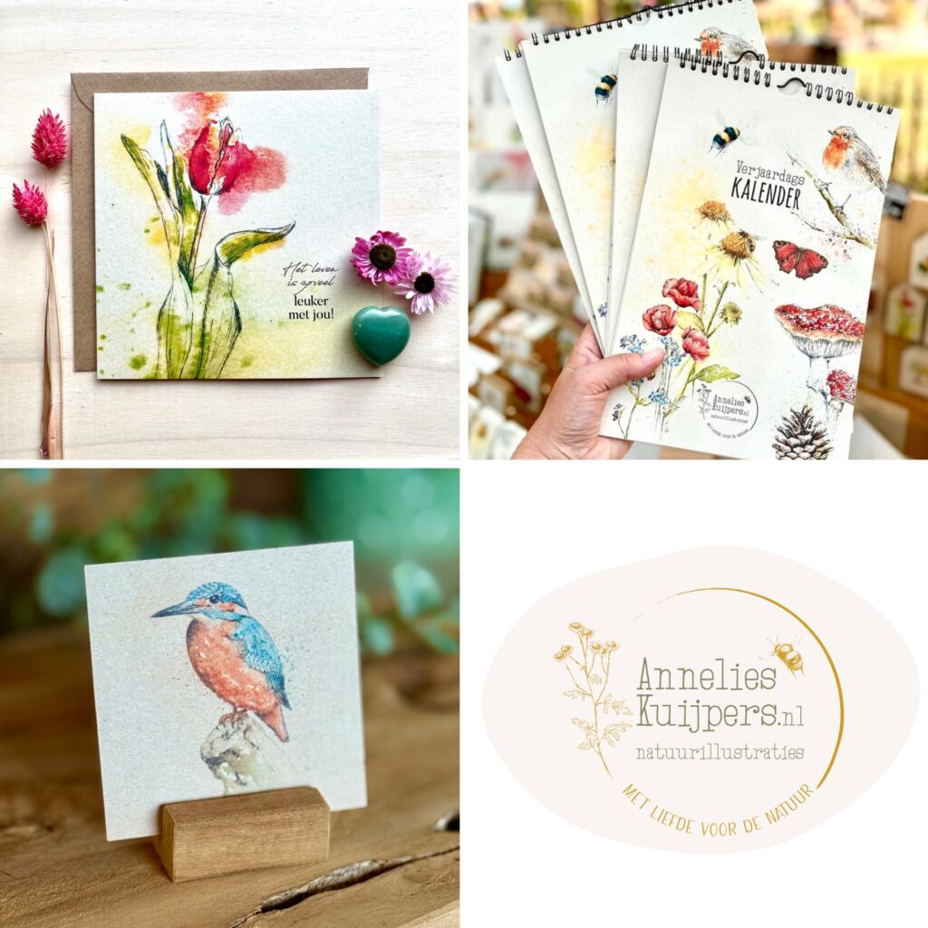 Bij mij, Annelies Kuijpers, vind je geen massaproductie, maar duurzame producten met handgeschilderde natuurillustraties die ik met liefde maak. Puur, eerlijk en met een eigen verhaal.